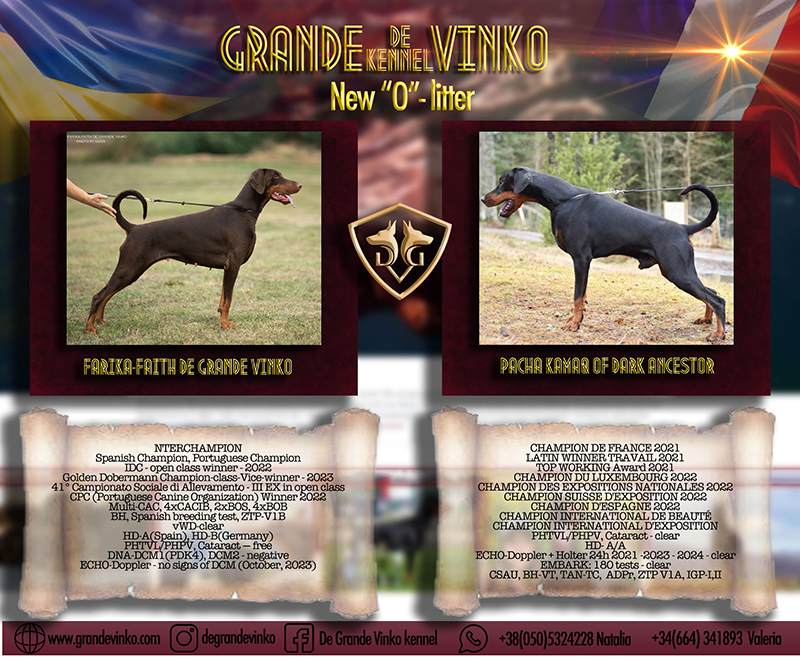 Breeder & Owner: Natalia Solovyova, "de Grande Vinko" kennel, Uzhgorod, Ukraine