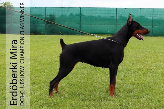 Titles Hungarian Junior Champion Romanian Junior Champion Romanian Champion Hungarian Show Champion Hungarian Grand Champion Show results 2013.08.24 CACIB Debrecen – Junior Class HPJ, judge: Papp László 2013.09.07 CACIB Hódmezővásárhely – Junior Class HPJ, Best Junior judge: Mick Svaljek 2013.09.08 CACIB Hódmezővásárhely – Junior Class HPJ, judge: Mile Aleksoski 2013.09.28 CACIB Arad– Junior Class CAC-J, judge: Vojislav Al Daghistani 2013.09.29 CACIB Arad– Junior Class CAC-J, judge: Maria Ceccarelli 2013.10.20 CACIB Komárom – Junior Class HPJ, BOS judge: Milivoje Urosevic 2014.02.13 CACIB Budapest– Intermediate Class CAC judge: Szokol Erika 2014.02.26 CAC Satu-Mare – Intermediate Class CAC judge: Valentin Calin 2014.02.26 CACIB Satu-Mare – Intermediate Class CAC, Res. CACIB judge: Viktoria Pogodina 2014.02.27 CACIB Satu-Mare – Intermediate Class CAC, Res. CACIB judge: Shamill Abrakimov 2014.04.13 Slovenian Dobermann Trophy Winner – Intermediate Class Res. CAC, judge: Barbara Z. Corsini 2014.04.20 CACIB Szilvásvárad – Intermediate Class CAC, Res. CACIB judge: Harsányi Péter 2014.05.11 CACIB Székesfehérvár – Champion Class CAC, Res. CACIB judge: Orcsik János 2014.05.18. Dobermann Club Romania – Champion Class Winner judge: Mario Mayerhofer 2014.06.01 CAC Nyíregyháza – Champion Class CAC, BOB judge: Török János Health BH, AV HD B (Germany) Eyes free Cardio free