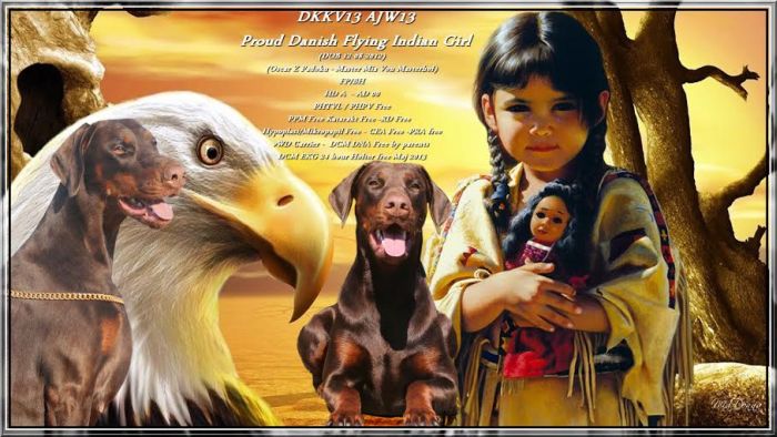 Titles Danish Breed Winner 2015 CHAMPION OF LUXEMBOURG AMSTERDAM JUNIOR WINNER 2013 DANISH BREED WINNER 2013 DKKV13 AJW13 Proud Danish Flying Indian Girl Work Results FP/BH Health results HD A - AD 00 PHTVL / PHPV Free PPM Free Katarakt Free - RD Free - Hypoplasi/Mikropapil Free - CEA Free - PRA free vWD Carrier DCM EKG 24 Hour Holter free 15. December 2014 DCM EKG 24 Hour Holter free Maj 2013 DCM DNA free by parents Show results