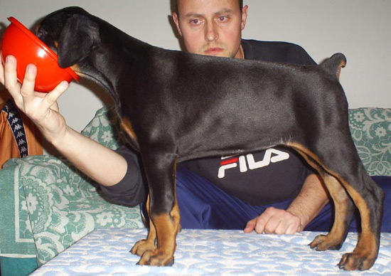 ![]() R.CACIB - CACIB Athens 2008 Vojvodina Winner Dobermann club show VP 1 3-6m. judge M.Sabanovic Internationale Dobermann meeting "Ferenc Csanane Eva" Hungary VP 1 6-9m. judge R.Killmayer IX Dobermann Cup Novi Sad VP 2 6-9m. judge N.Fokht Balkan Sieger 2007 VP 4 young class judge E.Szokol Black Club Winner - Dobermann Club Show Greece 2008 VP - AIAD 2008 - judge F.Coppo ZTP V1A - judge: Thomas Becht |