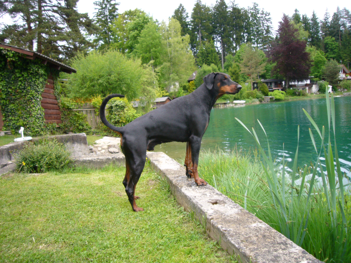 ![]() Titles: Swiss Beauty-Champion (SKG) German Champion (VDH) Candidate for: International Beauty-Champion FCI German Champion (DV) Slovenian Champion Austrian Champion Show results: 29.08.2010 Interdog Bohemia Mlada Boleslav (CZ) Champion class Bojan Matakoviè (CR) Exc.2 CAC Res. 22.08.2010 CAC Leipzig (GER) Champion class Georg Roth (GER) Exc.1, CAC 21.08.2010 CACIB Leipzig (GER) Champion class Walter Schicker (GER) Exc.1 18.07.2010 IDS Oberwart (A) Champion class Peter Mazura Exc.1, CACA CACIB Res. 27.06.2010 Doberman Club Show Maribor (SLO) Champion class Barbara Corsini (I) Exc.1, CAC 13.06.2010 CACIB Erfurt (GER) Working class Martin Gschwindl (AT) Exc.1, CAC Res. 12.06.2010 CAC Erfurt (GER) Working class Csaba Zsolt Lokodi (RO) Exc.1, CAC 07.03.2010 CACIB München (GER) Open class Josef Pohling (GER) Exc.3 28.02.2010 CACIB Fribourg (CH) Open class Danilo Furlani (CH) Exc.1 CAC CACIB Res. 27.02.2010 CACIB Fribourg (CH) Open class Rita Reyniers (BE) Exc.1 20.12.2009 CACIB Wijchen (NL) Open class J. Rob Douma (NL) Exc.3 15.11.2009 CACIB Friedrichshafen (GER) Open class Elsbeth Clerc (CH) Exc.2 28.06.2009 CACIB Brno (CZ) Open class Doris Getzinger (AT) Exc.2 CAC Res. 14.06.2009 CAC Klatovy (CZ) Open class Dr. V. Benes (CZ) Exc.2 CAC Res. CACIB St. Gallen CH Richterin: A. Cerne (SL) Carlos vom Safir, Rüde, schwarz, Offene Klasse: V1, CAC + CACIB CACIB St. Gallen CH Richter: R. Doedijns (NL) Carlos vom Safir, Rüde, schwarz, Offene Klasse: V1, CAC + CACIB Show, Fribourg, Suisse, judge: M. Blaha (Austria), 22.02.2009 Open class: SG1 (dog disabled, could not walk) Show, Fribourg, Suisse, judge: Natalja Nekrosiene (LT), 21.02.2009 Open class: V1, CAC, R-CACIB CAC- Show, Leipzig, Germany, judge: Dr. Peper (Germany), 14.09.2008 Intermediate class: V1 CACIB- Show, Leipzig, Germany, judge: H. Wiblishauser (Germany), 13.09.2008 Intermediate class: V2 CAC- Show, Erfurt, Germany, judge: Dr. Zafra Sirik (ISR), 15.06.2008 Intermediate class: V1, Best Male in Show CACIB- Show, Erfurt, Germany, judge: A. Hoppe (Germany), 14.06.2008 Intermediate class: SG3 CAC- Show, Westrich, Germany, judge: J. Rob Douma (Netherland), 10.05.2008 Intermediate class: V1 DV- Sieger- Hauptzuchtschau, Schweinfurt, Germany, judge: R. Killmaier (Germany), 30.06.2007 Youth- class: V Work: 14.08.2010, judge Hans Wiblishauser ZTP V1B 01.05.2010, VPG1 30.10.2010, VPG2 BH Health: HD-1 PHTVL/PHPV Free |