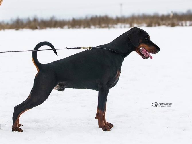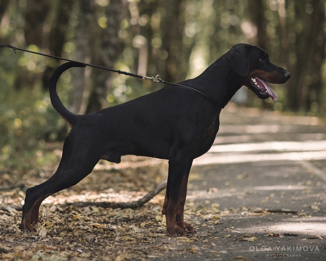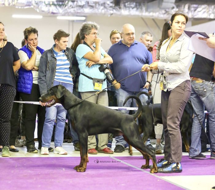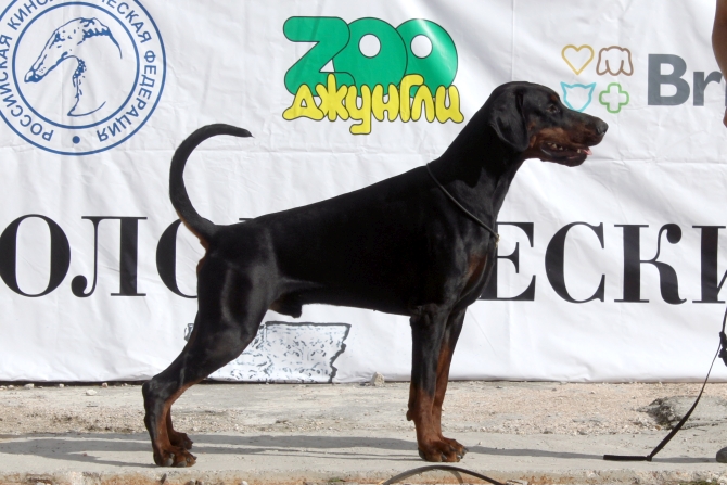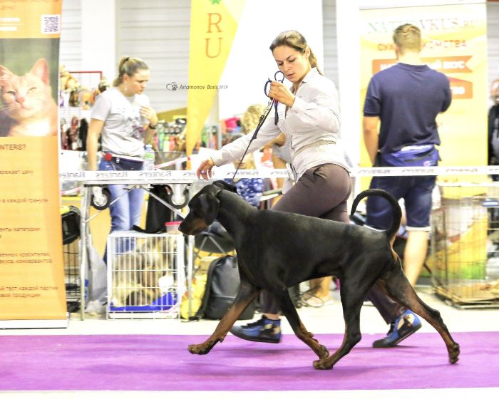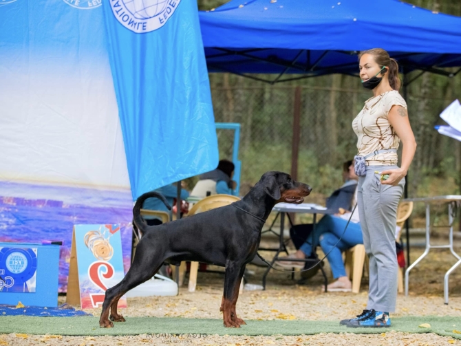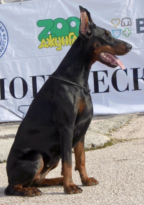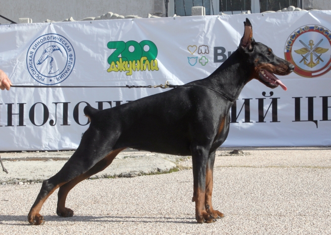 born on 29.04.2018 Junior Vice-IDC Sieger 2019 Junior HDK Winner 2019 Junior EuroTrophy Winner 2019 Junior Champion of Russian Dobermann Club Junior Champion of RKF Junior Champion of Russia Junior Champion of Belorussia Junior Champion of Ukraine Champion of Russia Champion of RKF Champion of Belorussia Champion of Azerbaijan Health results HD - A (Germany) vWD - Clair Work results BH IPO and ZTP in preparation |