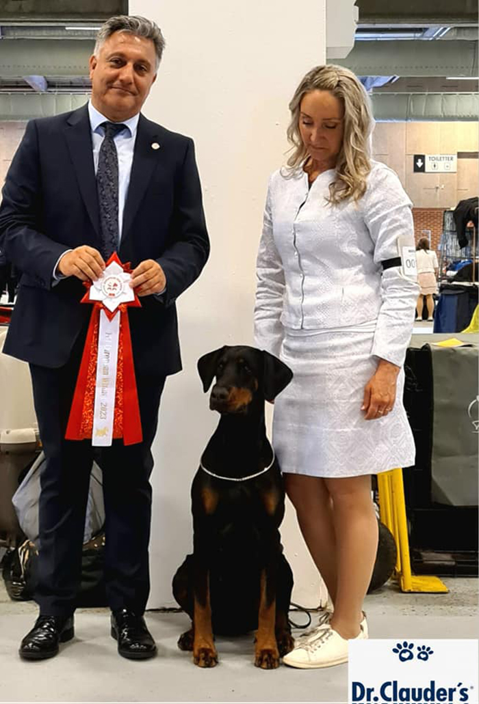 Exc.1, CK, Jun.CERT, J.CACIB, EUROPEAN JUNIOR WINNER 2023 - Dobergaarden Forever GEORGIA (Yanick del Colle della Guardia - Dobergaarden Forever Flawless Fendi)