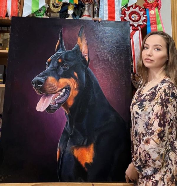 Также я безумно люблю доберманов , имея питомник, я хорошо разбираюсь в физиологии собак). Несколько лет назад я опубликовала на своей странице в фейсбуке простой рисунок карандашом добермана! И тут началась моя история написания портретов именно доберманов.