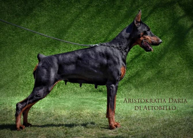 Titles INTERNATIONAL CHAMPION CHAMPION OF SERBIA CHAMPION OF MONTENEGRO YOUNG CHAMPION OF SERBIA Show results IDC 2107 intermedia class 3th place (Hans Wiblishauzer, Thomas Becht, Attilio Polifrone, Tamas Dohoczki, Josep Maria Bulo) AIAD 2017. young class (15-18) black females 3th place (A.Polifrone) European All Star Dobermann Grand Prix 2017 Bg intermedia class 3th place (G.Are Haglind) Speciality Dog Show II FCI group-KOVIN 2016 Baby class black females: Vp1, BEST OF BREED BABY ON THE SHOW (A. Ristovic) NDS Indjija 2016 Baby class Vp1, Baby BOB, Baby BIS 3rd place (M. Mladenovic) NDS Sremski Karlovci 2016 Baby class Vp1, Baby BOB, Baby BIS 1st place (R. Pajic) 18th Speciality Doberman Club Novi Sad 2016 VP1, PUPPY BEST OF BREED (O.Schenk Ilonu) IDS Odžaci 2017 Junior class J.CAC, J.BOB, J.BOG, J.r.BIS (B. Tomasz) NDS Sombor 2017 Junior class Exc1, J.CAC, JUNIOR BEST OF BREED (D. Vlahović) ADRIATIC CUP Bar (Montenegro) 2017 Junior class J.CAC, J.BOB, BOB, BOG III (P. Čelebic) ADRIATIC CUP Bar (Montenegro) 2017 Junior class J.CAC, JUNIOR BEST OF BREED (T. Jakkel) NDS Srbobran 2017 Intermedia class Exc1, CAC, BEST OF BREED (S.Tzegas) Work results BH IPO 1 Health results HD-B ED 0/0 VWD-clear DCM-clear