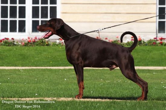 born 19.10.2012 TitlesDV SIEGER 2015, BOB DE VDH Champion DE DV Champion NL Champion PL Champion World Dog Show 2015: Working Class WINNER IDC Sieger 2014 Bundessieger VDH & BOB 2014 Bundessieger Österreich 2014 VDH Herbstsieger 2014 VDH Europassieger 2014 VDH Frühjahrsieger & BOB 2014 DVIN Club Winner 2014 Landesgruppensieger Niedersachsen 2014 ÖDK/OG-SÜD Austria Winner 2014 Euro Dobermann Trophy Winner 2014 Golden Dobermann Club Winner 2014 Sieger Berlin-Brandenburg & BOB 2014 DV Youth Champion VDH Youth Champion Jugendsieger Berlin & BOB 2014 v-ce IDC Jugendsieger 2013 v-ce Bundesjugendsieger 2013 German Junior Winner & BOB 2013 Show results CACIB x 6 Multi CAC BOB x 6 BOS x 8 Health HD-A vWD – free Delute – free PHTVL/PHPV/Cataract - free Cardio free (24-h-Holter/Doppler 15.01.2015) Work BH IPO 2 ZTP V1A (H. Wiblishauser) |