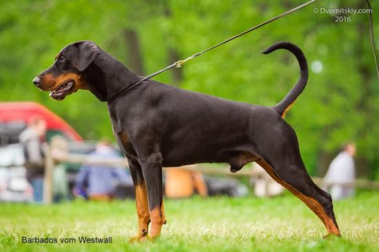 born 08.03.2013 TitlesInterChampion DV - Jugendsieger`2014 Youth Champion of Russian Dobermann Club Youth Champion of St.Petersburg Youth Russian Champion Champion of Russian Dobermann Club Grand Champion of Russia Champion of Russia Champion of Finland Champion of Belarus Champion of Lithuania Champion of Romania Champion of Bulgaria Grand Champion of Bulgaria Balkan Champion 12x CACIB 7x R.CACIB 14x BOB Work ВН IPO-1 Health PHTVL/PHPV/Katarakt/PPM/RD/ CEA/PRA - free vWD - clear Genotyp D/D - free HD-A ECHO+ECG+Holter 24h - no signs of DCM |