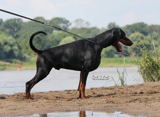 born on 01.02.2017 IDC Puppy Sieger 2017 CACIB Chemnitz 2019 - open class - judge: Dr. Roberto Schill (RO) - Exc.2 LG Siegerschau Sachsen 2018 - intermediate class - judge: Hans Wiblishauser (D) - Exc.1, res.CAC Golden Dobermann 2018 - intermediate class - judge: Rada Istvan (HU) - Exc.3 LG Siegerschau Hannover 2018 - youth class - judge: Hans Wiblishauser (D) - Exc.1, res.CAC CACIB Neumunster 2018 - youth class - judge: Norbert Daube (D) - Exc.1, Jugendsieger CAC Hamburg 2018 - youth class - judge: Martin Gschwindl (A) - Exc.1 VDH Europa Siegerschau 2018 - youth class - judge: Thomas Becht (D) - Exc.2 IDC Hungary 2017 - puppy class - judge: Tamas Dohóczki (HU) - Vp.1, IDC Puppy Sieger 2017 Open class CAC Hannover/DE 2019, judge: Armin Hoppe/DE - Exc2 Working class Rassehund-Meeting Meisdorf/DE 2019, judge: Gisa Schicker/DE - Exc2 CAC Meisdorf/DE 2019, judge: Anna Tits/DE - Exc1, CAC, Sieger Meisdorf 2019, BOB CACIB Hannover/DE 2019, judge: Horst Kliebenstein - Exc1, CAC, res-CACIB Euro Dobermann Trophy Winner/A 2019, judge: Dr. Josep Maria Buló/ES - Exc4 EDT Championchip/A 2019, judge: Dusan Travniker/SRB - 6th place HDK Derby Winner/HU 2019, judge: Erika Szokol, Rada István/HU - Exc Work results BH AD ZTP V1A IGP 1 (98, 88, 83a) IGP 2 (89 / 83 / 92a) IGP 3 (87 / 88 / 84a) Health results HD-1 vWD - carrier Dilution - free Thyroid - OK PHTVL/PHPV, MPP, Cataract, RD, PRA free 24 h ECG holter, heart ultrasound, troponin - no signs of any heart disease (July 2020) Heart ultrasound - no signs of any heart disease (March 2018) |