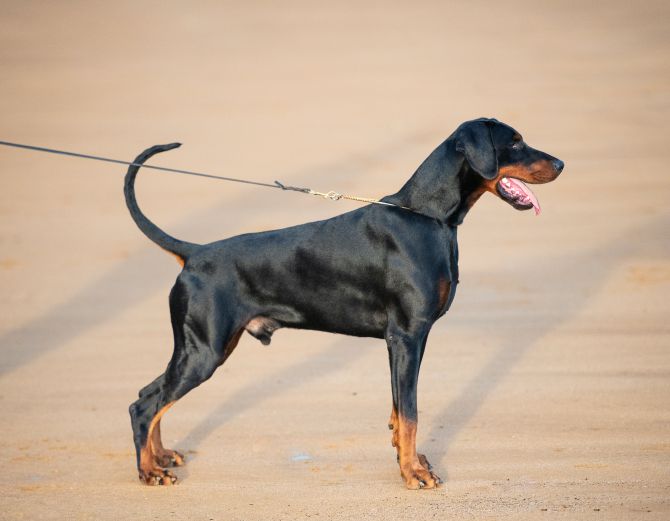 Titles Portugal champion Latin Champion International Beauty Champion International Shows Champion Best doberman in Spain 2023 Spain Champion Latin Winner 2023 RSCE Winner 2023 Cantabrico Winner 2023 CH. Cantabria Group 2 2022 CH. Cantabria 2022 AEAD trophy winner 2022 Latín winner 2022 Cantábrico winner 2022 Euskadi winner 2022 Show results V CONCURSO NACIONAL CANINO LAGO DEL ACEBO - Champion class: Exc 1º, BEST OF GROUP 2 & RBIS Exposition canine internationale Tarbes (France) - Champion class: Exc. 1°, CACIB, BOB, LATIN WINNER 141 EXPOSICIÓN CANINA INTERNACIONAL DO CLUBE PORTUGUES DE CANICULTURA - Working class: Exc.1, CAC, CACIB & BOB III CONCURSO NACIONAL DE GUARNIZO - Champion class: Exc. 1º BOB, BEST OF GROUP XXVIII CONCURSO NACIONAL REINOSA - Champion Class: Exc. 1° BOB, RESERVE BEST OF GROUP LVII Exposición internacinal Bilbao 03/09/2023 - Champions class: Exc.1º CACIB, BOB & EUSKADI WINNER 2023 WORLD DOG SHOW GENEVE 2023 - working class : Exc.3º III concurso nacional Valderredible 29/07/23 - working class: Exc.1º BOB & 3º group II XVIII Exposicion internacional de Cantabria 02/07/23 - Working class: Exc. 1º CAC, CACIB & BOB L Exposición nacional de Cantabria 01/07/23 - Working class: Exc. 1º CAC XCIV Exposición internacional de primavera RSCE -28/05/23. Working class: Exc.1 CAC-QC, CACIB & BOB XXXIX Exposición internacional Otoño de la RSCE - 27/05/23.Working class: Exc. 1, CAC-QC, CACIB & BOS 40 E.C.Internacional Valladolid (CAC-QC/CACIB) - 05/03/23 Working class: Exc.2º RCAC-QC & BEST MALE IN COURAGE TEST, AEAD TROPHY WINNER II AEAD Championship - 27/11/2022 Open class: Exc. 2º. 138 E.C. Internacional Clube Portugues Canicultura 30/10/22.Open class : Exc. 2. 137 E.C Internacional Clube Portugues Canicultura -29/10/2022.Open class: EXC.1- CAC / CACIB - LATIN WINNER II Concurso nacional de Guarnizo 15/10/2022 Open class (23 m.): Exc. 1, BOB & 2nd GROUP 2. XXVII Concurso regional Reinosa 24/09/22 Open class (23m.): Exc.1, BOB, BEST GROUP 2 & BIS LVI Exposición Internacional de Bilbao 04/09/22 Open class (22m.): Exc.1, CAC, CACIB & BOB - EUSKADI WINNER LVII Exposición Nacional de Bilbao 03/09/22 Open class ( 22 m.) : Exc. 1, CAC & BOB. XXVII Exposición internacional cantabria 24/07/22, intermediate class: Exc. 2. XL Exposición Nacional de Cantabria 23/07/22: intermediate class: Exc.1,CAC & BOB - CANTABRICO WINNER XXXII Exposicion internacional Medina de Pomar 19/06/22 : Intermediate class Exc.1º CAC, CACIB & BOS - 20 Months. Concurso nacinal Villa de Noja 11/06/2022: Open Class - Exc 1º BOB - 19m. IV Concurso nacional Lago del Acebo Cabarceno 01/05/22: Open Class: Exc 1º BOB - 18m XL Monografica Dobermann Club de España: Junior Class : Exc. 2º, 13 months Exposición Internacional de Bilbao 05/09/21 : Junior Class. Exc.1º CCJ Exposición Nacional de Cantabria 26/06/21: Puppy Class. 1Vp, BOB Puppy Work results IGP 1 IGP 2 ( BEST TRACK AND BEST OBEDIENCE) ADPR IGP V : 70 / 95 / 92 (Best dog in day) AEAD courage test 2022 BEST MALE : AEAD trophy winner 2022 ZTP - V1A ( Judge: H. Wiblishauser ) ( 20 months) SOCIABILITY TEST BH Health results CARDIO free (13/01/2022) DCM 1 & DCM 2 : Free HD - B (DV) vWd - Carrier PHTVL/PHPV: Free PPM: Free CATARACT: Free RD: Free HYPOPLASTIA/ MICROPAPILLA: Free CEA: Free PRA: Free DILUTION : D/D (CLEAR) DNA available Eco/ Doppler and holter 24H. FREE (30/01/2024) Bb ECVO free