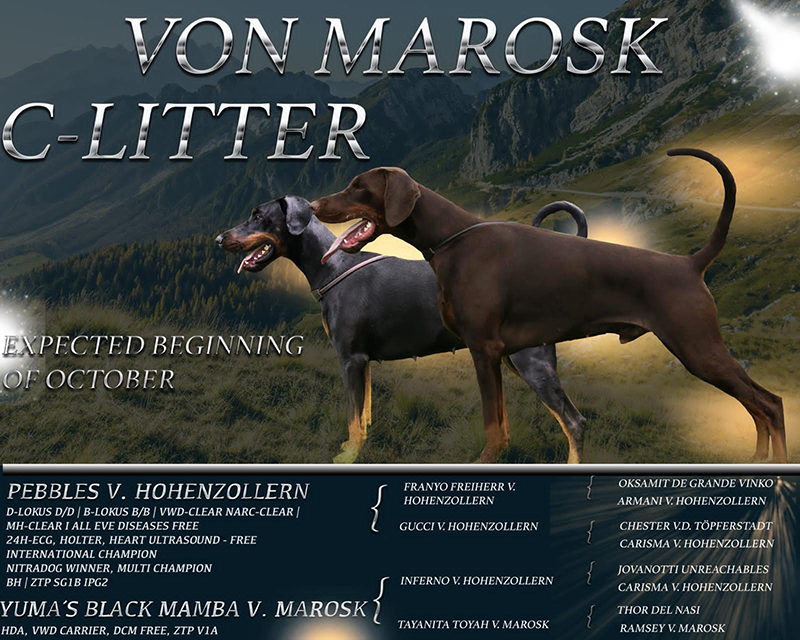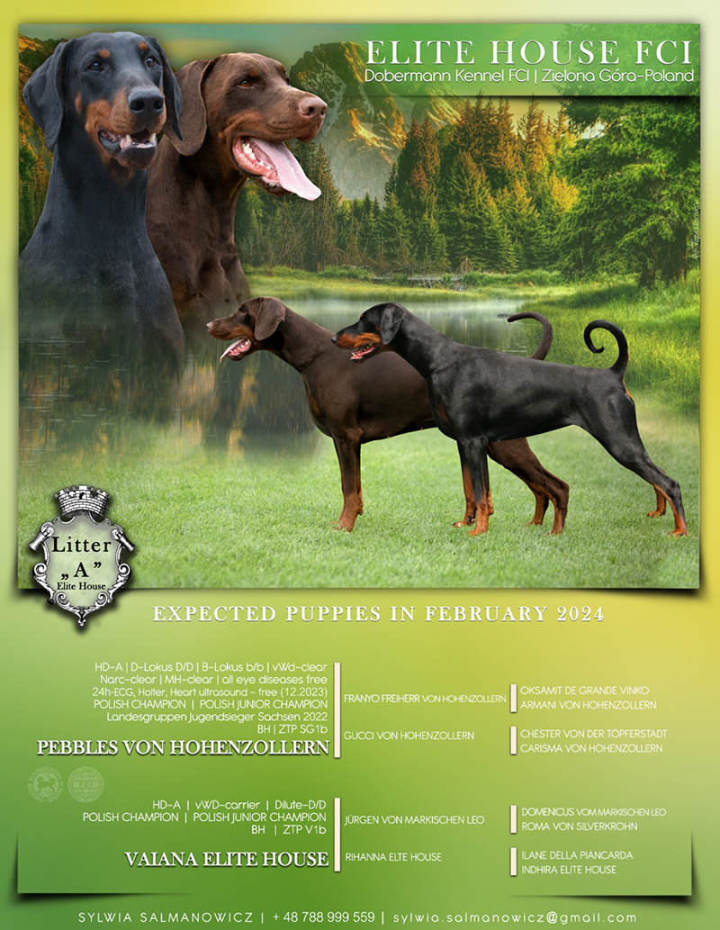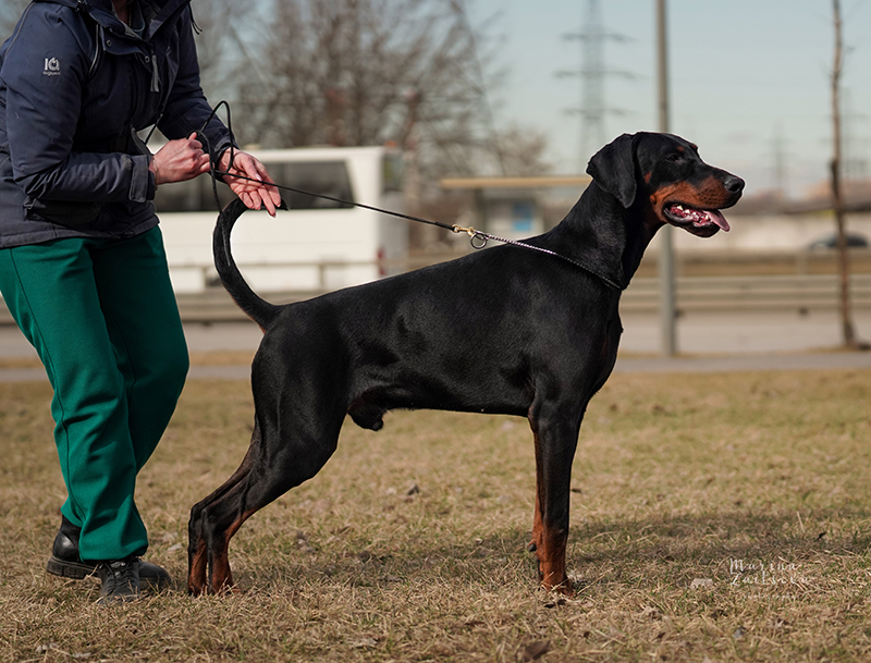 owner of the dog is Meike Schoenborn, Dobermann Kennel "von Hohenzollern"