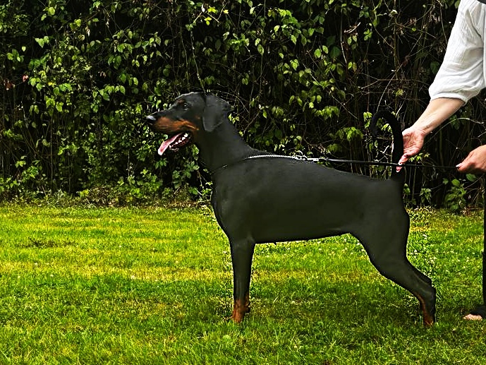 owner of the dog is Sabine Lorenz, Dobermann Kennel "vom Eschenbruch"